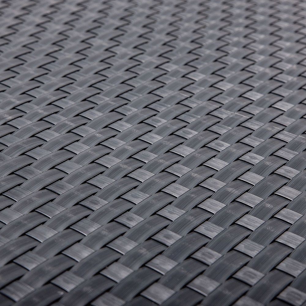 Ratanová rohož z tkaných pásů technoratanu (umělého ratanu). Technoratan se vyznačuje vysokou pevností a odolností proti povětrnostním podmínkám (vlhkost, UV záření, nečistoty).