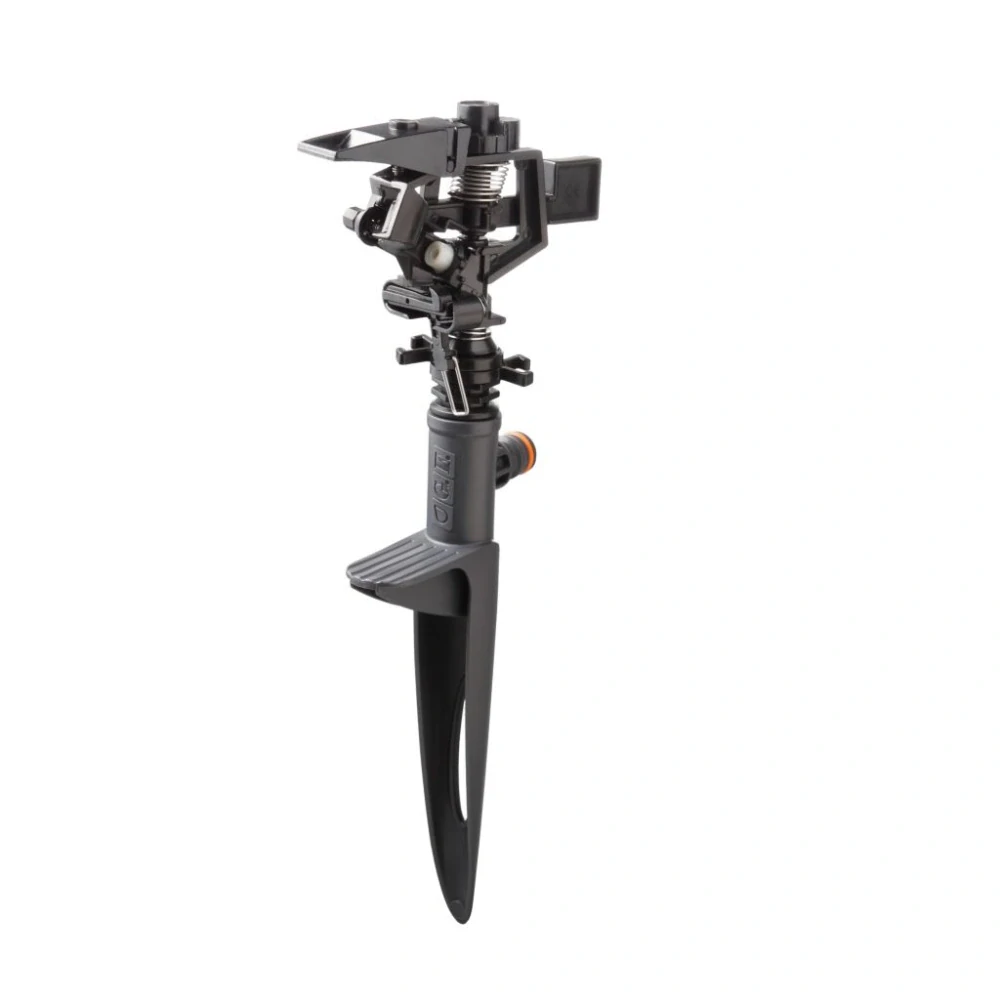 Výsečový úderový postřikovač SPIT se zemním bodcem je určený k zavlažování zemědělských ploch, sadů, průmyslových areálů a malých sportovních hřišť až do vzdálenosti 12 m. Postřikovač je navržen jako výsečový, ale po uvolnění úchytu lze provozovat také jako celokruhový. Postřikovař má ve spodní části 1/2" připojovací závit a lze ho tak snadno v případě potřeby od zemního bodce oddělit. Délku dostřiku lze zkrátit pomocí regulačního šroubku. Připojení na zdroj vody přes hadicovou rychlospojku.